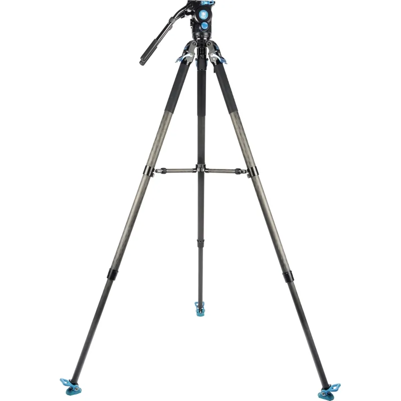 Each leg has a diameter of 40 mm, and the carbon fiber construction reduces weight while increasing stability. It supports a maximum load of 25 kg, making it suitable for heavy equipment. A mid-level spreader is included for added stability, and the legs can be locked in three positions (22, 50, and 78 degrees) using a semi-automatic button.