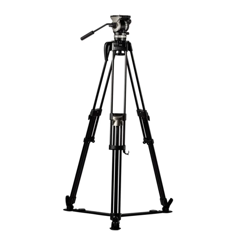 This video head supports a 10 kg load and includes 1/4 and 3/8 threads for additional attachments. The sliding quick release plate is compatible with various accessories, and it features a backlit spirit level.