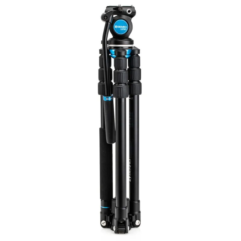 The Aero 2 PRO is the lightest and most compact tripod that Benro offers. It is fitted with the S2PRO video head which can support up to 5.5 lbs. and is best suited for small cameras. The tripod features reverse folding legs and a removable head to allow a compact traveling size. The tripod can also be converted to a fully functioning video monopod by unthreading one of its legs and joining it with the center column.