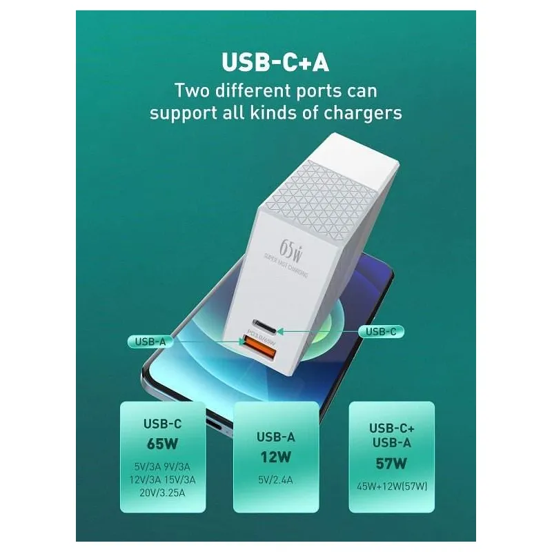 USB Port supports most kinds of phones (with PD and QC 3.0 output).
