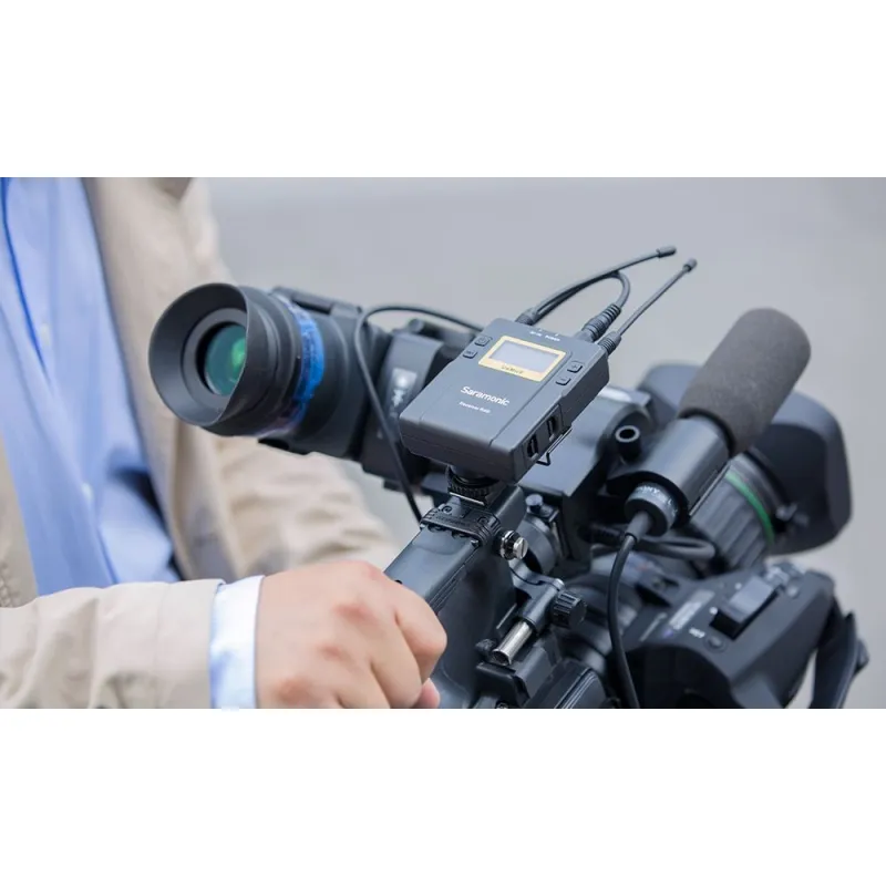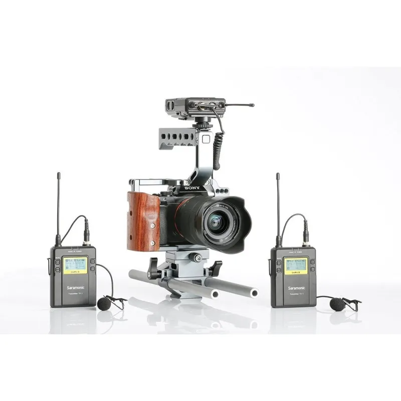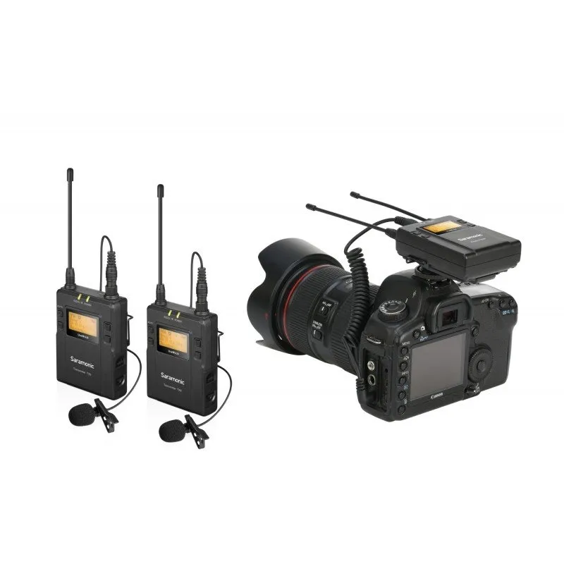 The Saramonic UwMic9 RX9+TX9+TX9 is a portable, dual-channel, camera-mountable UHF wireless system that provides stellar, broadcast-quality sound. It is ideal for capturing interviews, film dialog, field recording, broadcast TV, news gathering, vlogging, YouTube videos, and more. Every component features sturdy metal construction and delivers excellent sound quality in a low-cost package.