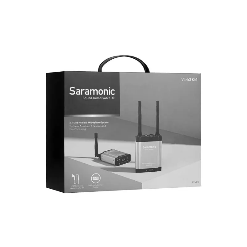 The Saramonic Vlink2 is a versatile and easy-to-use 2.4 GHz wireless microphone system for news broadcast, interviews and field recording. The whole system is perfect for DSLRs, Mirrorless and all types of cameras, portable audio recorders and smartphones with 3.5mm microphone input.