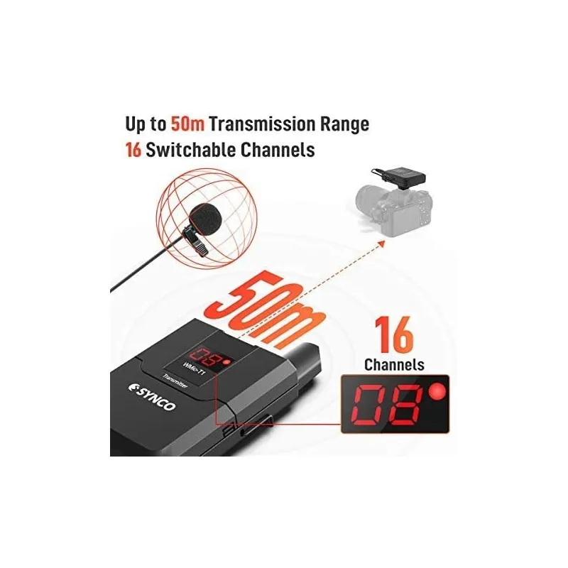 Synco Audio WMic-T1 16-Channel UHF Wireless Lavalier Microphone System with Transmitter, Receiver and Lavalier Mic