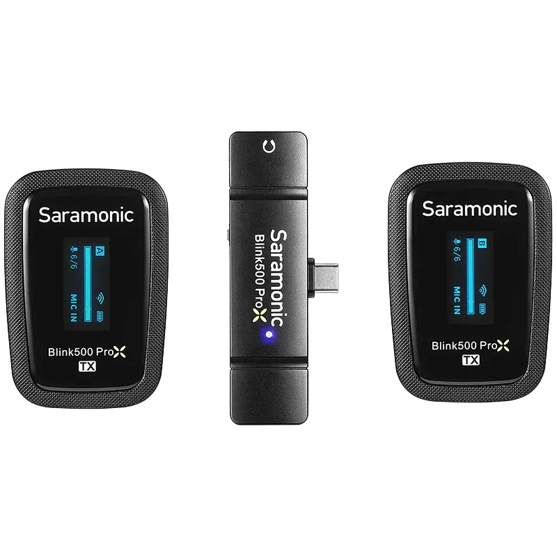 The Saramonic Blink500 ProX B6 Wireless Audio Transmission Kit (RXUC + TX + TX) is the perfect choice for vloggers, journalists, youtubers, tiktokers and web creators. In the box youll find a receiver that plugs directly into a USB-C port (such as on a smartphone, tablet or laptop), 2 transmitters, a unique charging case, tie microphones and additional accessories.