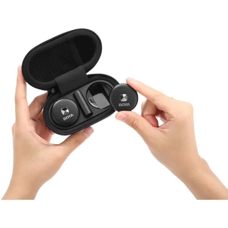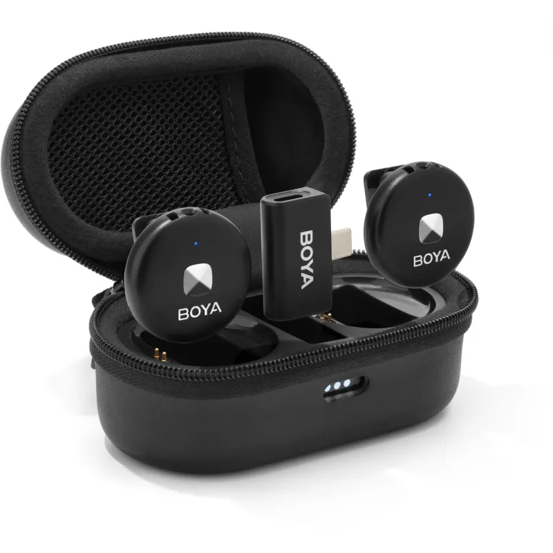 The Boya Omic is an ultra-compact and portable 2.4GHz wireless microphone system, compatible with computers, Android mobile devices and more. The Omic is ideal for content creation, live streaming, vlogging, mobile journalism and much more. The set includes two transmitter-microphones, one receiver, furry wind shields and a practical case for carrying and storing the set.