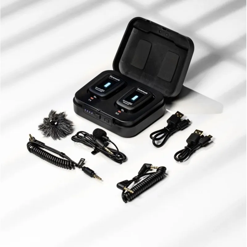 Saramonic Blink 500 Pro B1 is an advanced 2.4GHz wireless system that delivers spectral, broadcast-quality sound for cameras, mobile devices and more. Ideal for broadcasters, broadcasters, vloggers, live streamers, YouTube creators and directors. This ultra-portable and feather-light kit comes with one clip-on wireless transmitter with built-in microphone, a professional lavalier microphone, a dual-channel receiver and a portable charging case. The receiver has both TRS and TRRS output cables and slides easily into a camera or frame mount. It's so compact and lightweight that you can even clip it to your smartphone, tablet, or even your camera strap. The receiver makes it easy for you to wirelessly talk to yourself or someone else, and if you ever need to mic up two people, you can simply connect a second Blink 500 Pro TX wireless transmitter (sold separately ) and make it a dual wireless microphone.