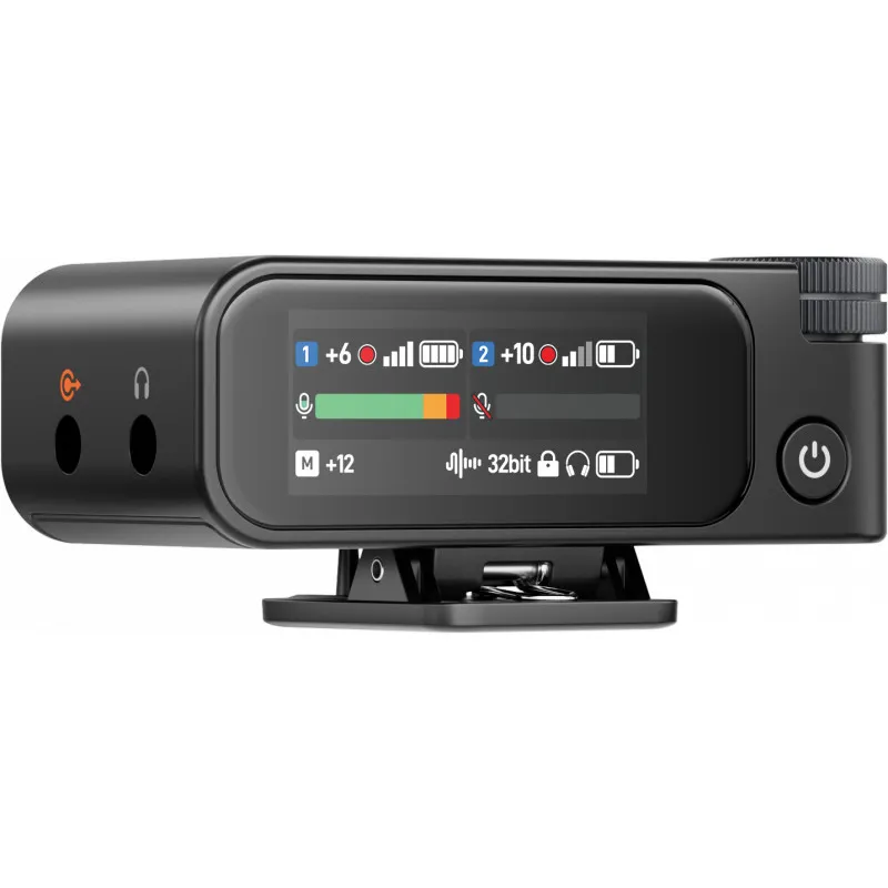 Wireless microphone system for cameras and smartphones Kit includes two transmitters and one receiver AI noise cancellation, 48 kHz/32 bit float 8 GB onboard recording AMOLED touch screen & 300 m range Battery lasts up to 54 hours with the charging case