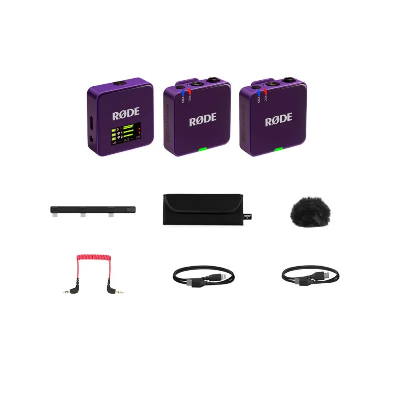 The RODE Wireless GO III - Purple is an advanced dual-channel wireless microphone system designed for content creators, filmmakers, and audio professionals. Building on the legacy of its predecessors, the Wireless GO III introduces 32-bit float on-board recording, 32 GB of internal memory, and intelligent GainAssist technology to capture crystal-clear audio with remarkable dynamic range.