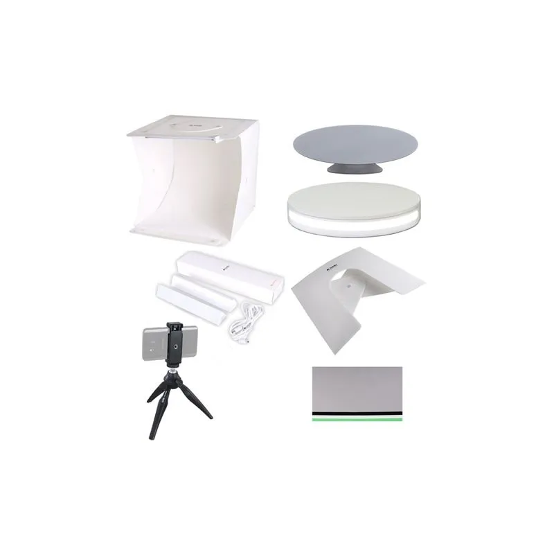 The Orangemonkie Foldio2 Complete Product Photography Set is a special offer, in which you have all the accessories you need to make the perfect 360 spin in one go, in addition to the mini turntable. Whether you are photographing jewelry, shoes, food, electronics or other objects: with this set you can capture it all perfectly! This set is compatible with your smartphone and DSLR. The dimensions of the Foldio2 Plus are 38x38x38 cm.