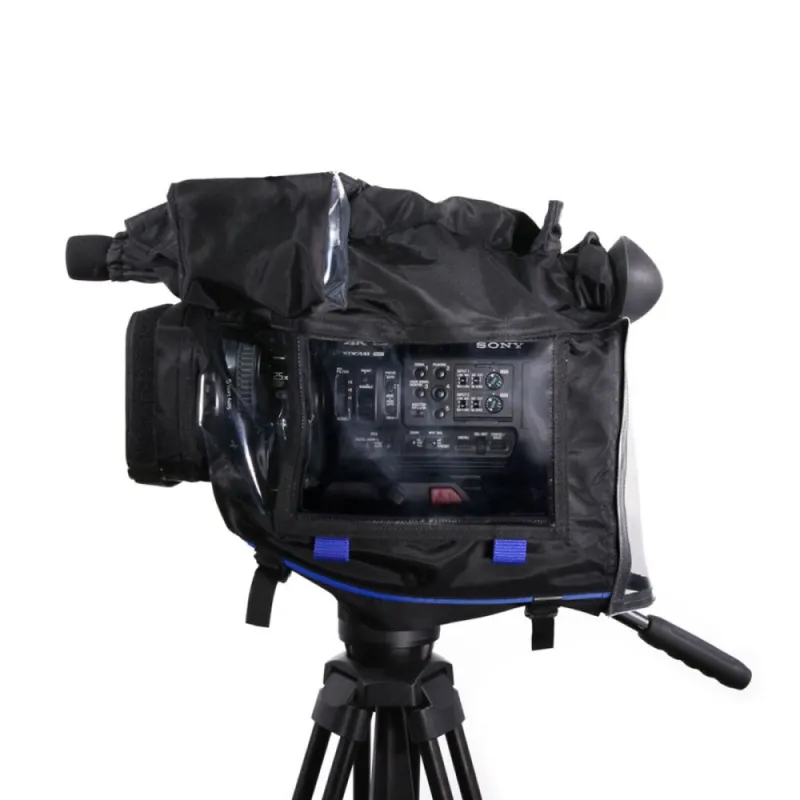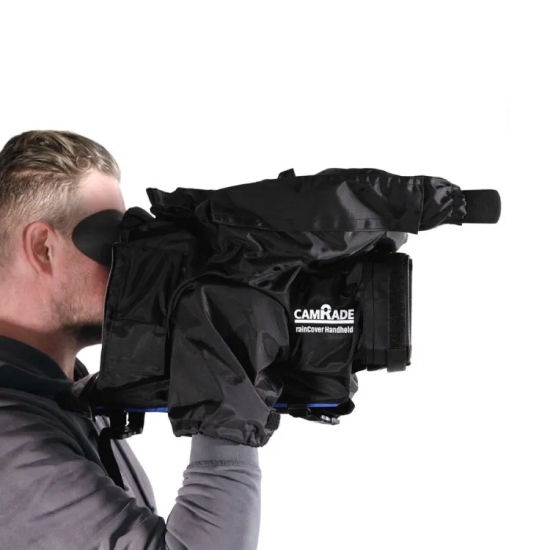 Universal protection cover for most Sony, Panasonic, JVC & Canon larger handheld video cameras. Includes a water-resistant storage pouch.