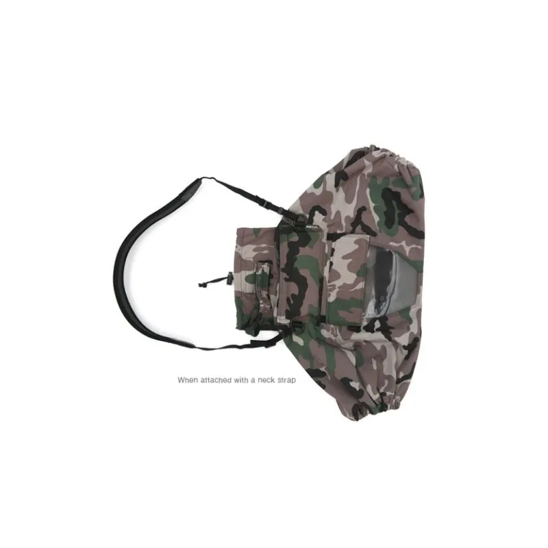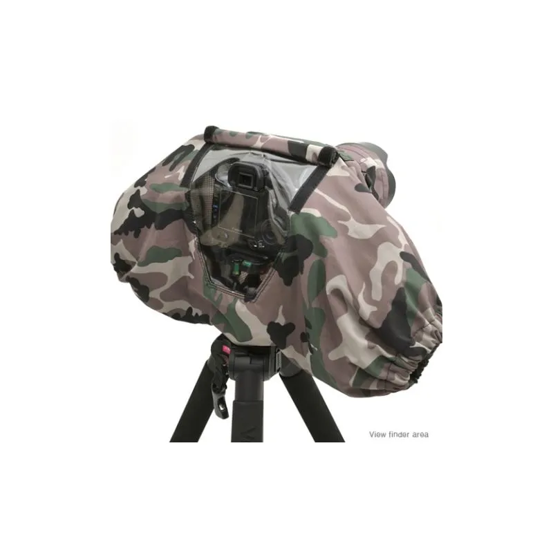 Matin M-7101 Deluxe kamuflāžas kameras lietus pārvalks ir aprīkots ar caurspīdīgu logu, kas ļauj redzēt skatu meklētāju un LCD ekrānu, kad kamera ir aprīkota ar ūdensnecaurlaidīgu pārvalku. Pārsega kreisajā un labajā pusē ir divi caurumi, kas kalpo kā uzmavas jūsu rokām. Šīs uzmavas ir elastīgas, lai nodrošinātu to, ka tās cieši pieguļ jūsu rokām un tādējādi novērš ūdens un putekļu nokļūšanu kamerā.