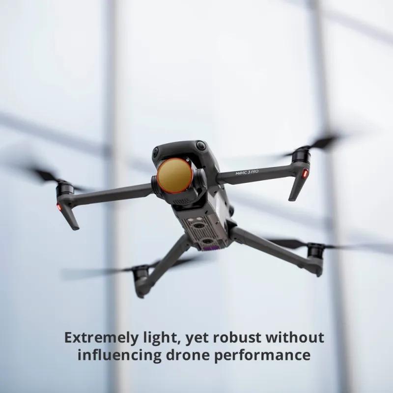 The filter uses professional optical glass as the base material, which has been ground and polished multiple times for a high definition image. The double sided multi layer coating repels water and oil and is scratch resistant. The filter has a quick release design and does not interfere with gimbal calibration.,