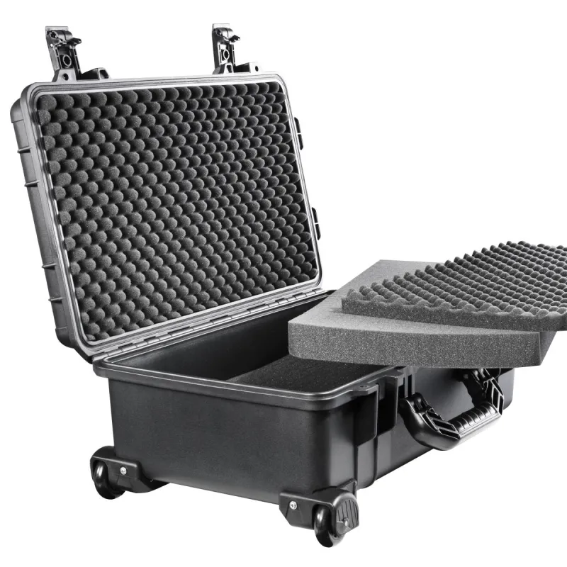 The foam rubber inlay, suitable for cases of the mantona Outdoor protection case series, consists of a raster foam rubber mat that can be cut to sizes, and an additional burled foam rubber. The raster inlays cannot only be used for padding the floor of the case, but can also be separate to individual pieces along the existing perforation, which can then be used to fix devices like exposure meter, camera or similar in the case. Accessories are thus optimally protected during transport.