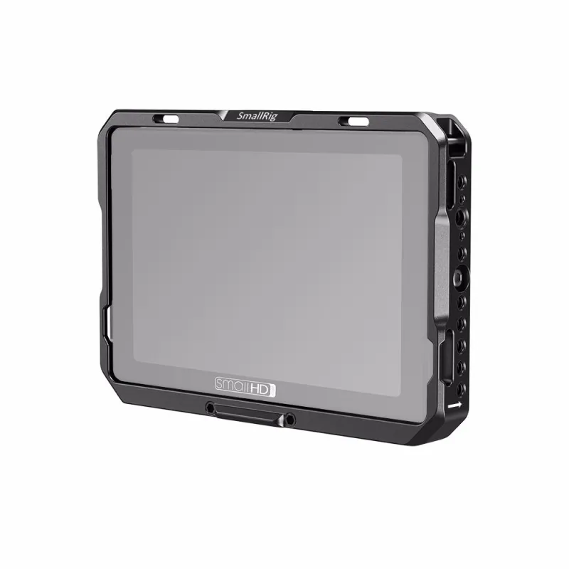 SmallRig Cage with Sun Hood for SmallHD 702 Touch Monitor CMS2684 is designed to provide all-around protection and accessory mounts for the monitor. The cage secures to the monitor via three 1/4"-20 screws, with one on the top and bottom, and one on the back. Featuring multiple 1/4''-20 and ARRI 3/8''-16 threads allows for mounting accessories such as Magic Arm 2115, Monitor Mount BSE2348 and Wireless Receiver Bracket 2107. The bottom features a NATO rail for NATO clamp compatible accessories to quickly release your setup, such as Monitor Mount BSE2385. Dedicated sun hood is included to provide glare protection when shooting outdoor. The backplate is compatible with V-Lock Battery Mount 1846 to attach a V Mount battery. Features multiple rubber pads inside to prevent the monitor from scratching.