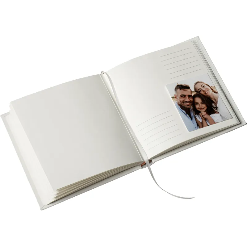 Šim fotoalbumam ir minimālisma stilā veidots vāks, kas izstaro pārlaicīgu eleganci. Tīrais dizains un izsmalcinātie materiāli padara to par skaistu papildinājumu jebkuram mājas interjeram - gan novietotam uz kafijas galdiņa, gan glīti izstādītam plauktā.