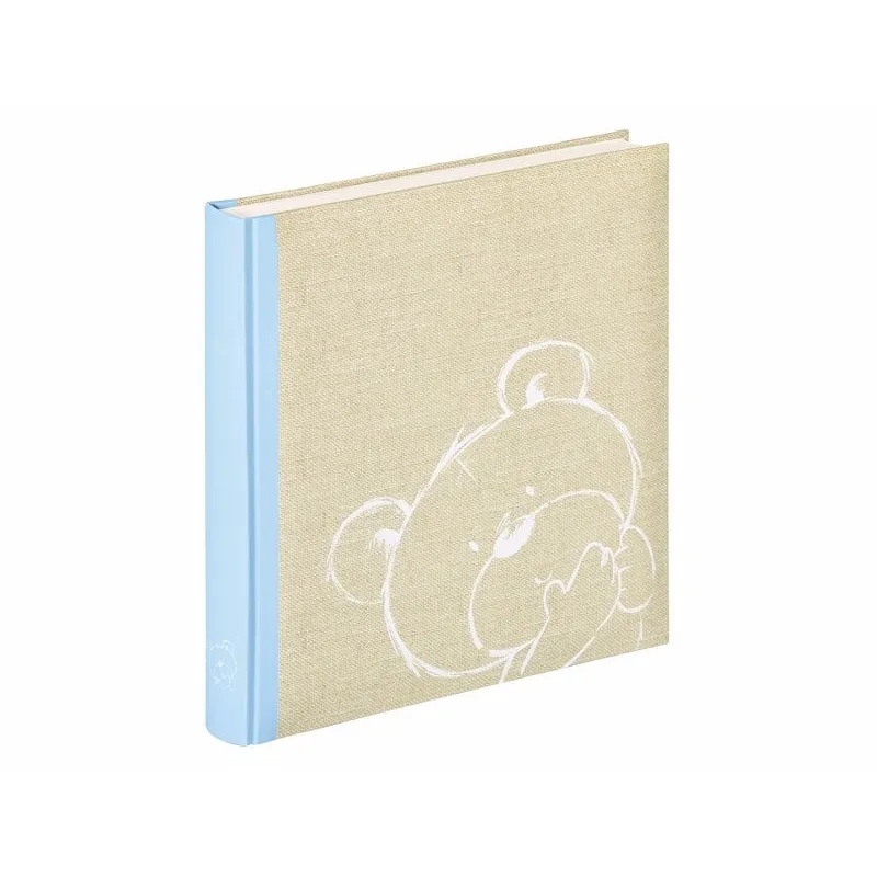 Bookbound album with laminatied artpaper with design of a bear.