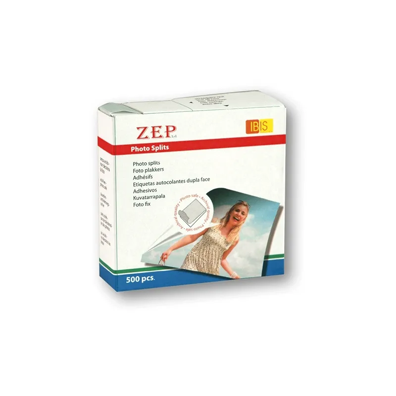 The BX500 from Zep Italia are double sided photo stickers. In a box of BX500 there are 500 photo stickers, which are easy to unroll. One side is ready to be glued, the other side has a protective foil on top with a peel-off flap.