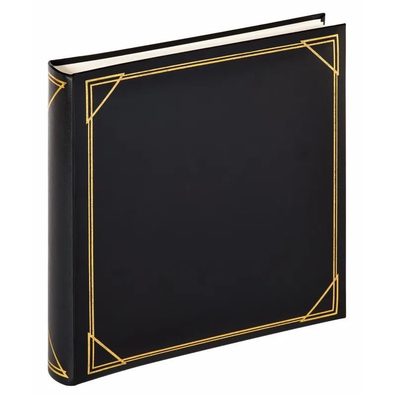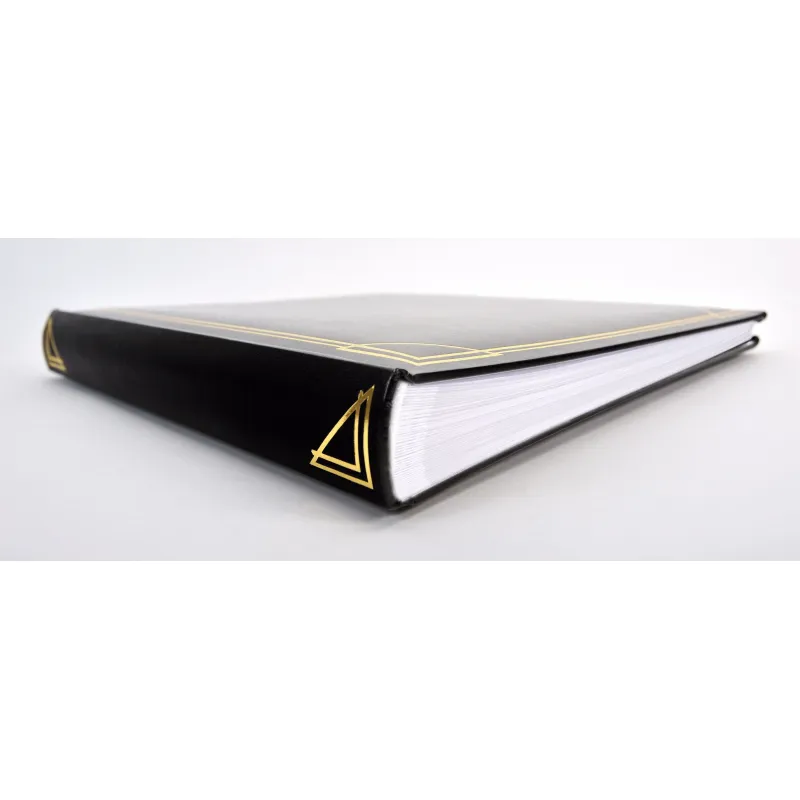 Bookbound album with artificial leather cover & gold embossment. Size 30x30 cm with 100 white pages with white glassine covers.