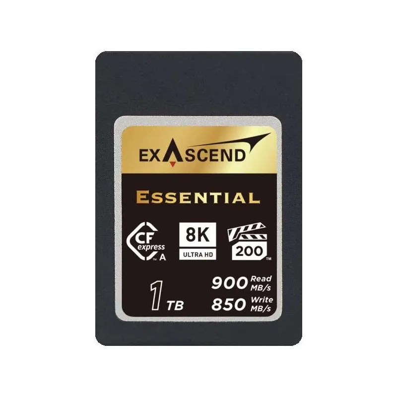 Exascend VPG200 sertificētā Essential CFexpress A tipa CFexpress sērija ir pieejama 1 TB, 480 GB, 360 GB, 240 GB, 240 GB, 180 GB un 120 GB ietilpības kartēs, kas nodrošina lasīšanas veiktspēju līdz 900 MB/s un rakstīšanas veiktspēju līdz 850 MB/s.