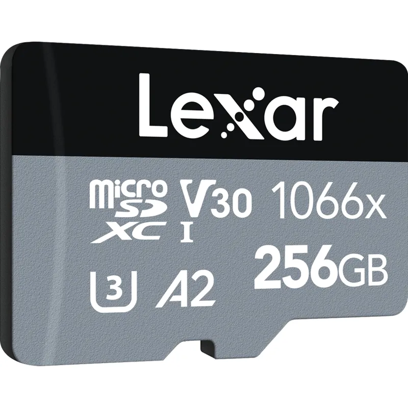 Capture your adventures in 4K UHD Designed for your action cameras, drones, or Android™ smartphone, the Lexar® Professional 1066x microSD™ UHS-I Card SILVER Series lets you quickly capture and transfer high-quality photos, including Full-HD and 4K UHD video with speeds up to 160MB/s read, and up to 120MB/s write. The card is U3, V30 and A2 rated for high-speed performance. This card gives you the speed and storage you need to capture more adventures on the go.