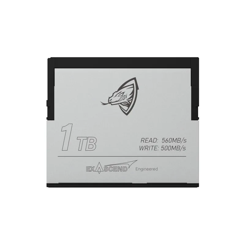 The 1TB Archon CFast 2.0 Memory Card from Exascend is compatible with RED, including RED Komodo, as well as Blackmagic Design, ZCam, Canon C200, Canon C300, and other devices that are compatible with the CFast 2.0 standard, which utilizes the SATA III 6 Gb/s interface. It can handle raw video and features maximum read speeds of up to 560 MB/s, maximum write speeds of up to 500 MB/s, and minimum write speeds of up to 450 MB/s.