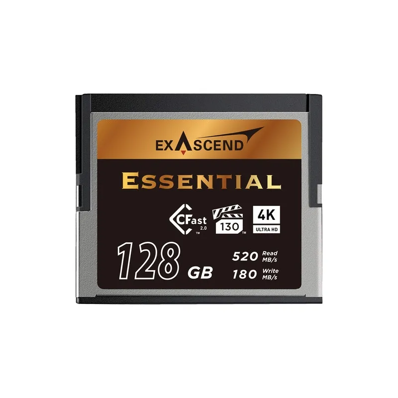 Optimized for high-end photography, cinematography, and other enterprise applications, the 128GB CFX Series CFast 2.0 Memory Card from Exascend delivers performance, stability, and reliability for demanding tasks. This card features a storage capacity of 128GB, 3D TLC flash memory, and utilizes the SATA III 6 Gb/s interface to achieve maximum sequential read speeds of 550 MB/s and maximum sequential write speeds of 530 MB/s. This card also delivers an MTBF of 2 million hours, a total bytes written (TBW) rating of 150TB, an unrecoverable bit error rate (UBER) of 1 sector per 1017 bits read, and is resistant to shock and vibration, as well as temperatures ranging from 23 to 158°F. Furthermore, there is integrated data protection, such as AES 256-bit encryption, data retention, firmware encryption, RAID ECC, TCG Opal, multi-image firmware backup, and more.