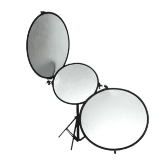 The walimex Set consisting of Tripod, Tri-Reflector Extension Arm and three Reflectors is an ideal tool for lighting your motifs, especially in portrait photography. The Tri-Reflector is ideal when portraits are made using only one flash or when working indirectly with one flash. No matter if you are working with one or with two or three Reflectors, the required lighting effect can always be achieved.
