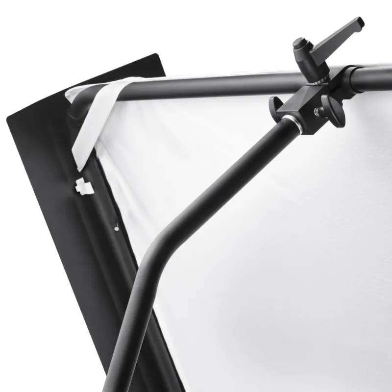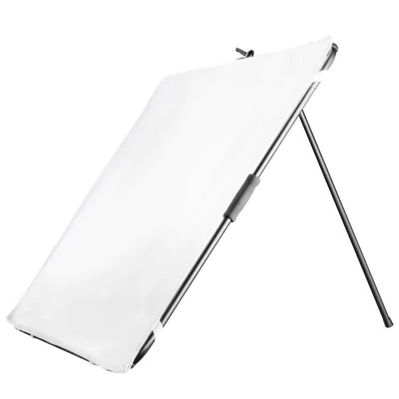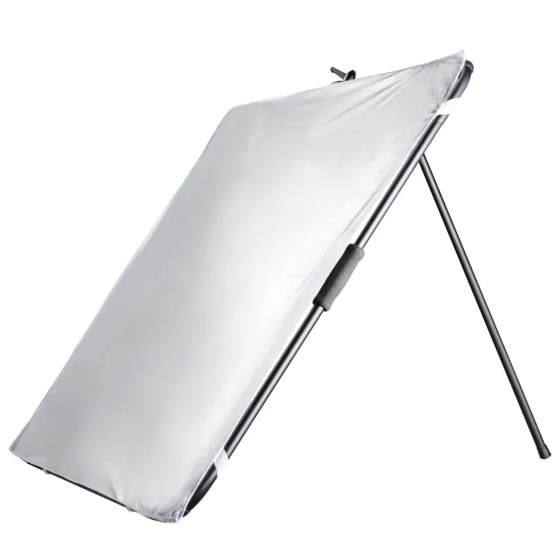 The aluminum frame of the reflector panel is equipped with three foam grips. The grab bar is also equipped with a foam handle. This ensures a comfort of use even when holding the panel for a longer period of time. The reflector panel can be taken apart into a compact size and be stored in its transport bag. This makes it ideal for studio and outdoor photography / mobile use.