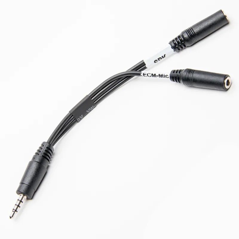 The AZDEN acoustic HX-MI trrs Microphone/headphone interface cable is designed to make microphones with a Mini trs connector Compatible with your mobile devices. JUST plug your Microphone into the HX-MI Microphone Input and attach the cable to the Microphone/headphone jack of your device. Plug your headphones into the headphone Output of the HX-MI to listen to your recordings. The HX-MI works with any device with a trrs jack.