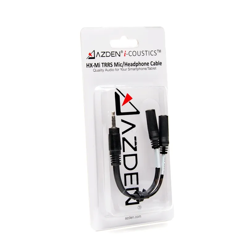 This adapter cable lets you record the mic to a mobile device with a TRSS jack! The Azden i-Coustics HX-Mi TRRS Mic/Headphone Cable is designed to make your Azden microphone compatible with your mobile devices. Just plug your Azden microphone into the HX-Mi mic input and attach the cable to the microphone/headphone jack of your device. Plug your headphones into the headphone input of the HX-Mi to listen to your recordings. The HX-Mi works with any device with a TRRS jack, which includes the latest model phones and tablets from Apple, Samsung, Google and other Android based mobile device manufactures. You can use this product in conjunction with most available recording apps.