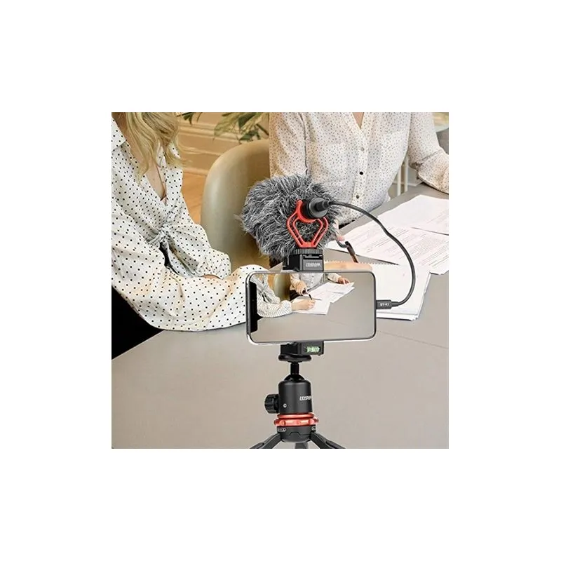 Jūs izmantojat BY-K1 kopā ar ārējo mikrofonu un iPhone vai iPad ar Lightning ievadi. Tā mazā izmēra dēļ adapteri var ērti ņemt līdzi, lai kur jūs dotos. Tātad jūs vienmēr varat veikt intervijas vai ziņot tiešraidē, pat neparedzētās situācijās. Izmantojot 3,5 mm ligzdas spraudni, varat pievienot adapteri ārējam mikrofonam (skatiet papildu piederumus). Pēc tam pievienojiet Lightning savienotāju savam iPhone vai iPad.