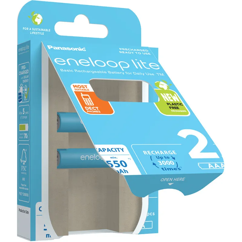 eneloop lite – ideāls risinājums zema līdz vidēja enerģijas patēriņa ierīcēm eneloop lite akumulators ir ideāli piemērots zema līdz vidēja enerģijas patēriņa ierīcēm, tādām kā DECT bezvadu tālruņi un vadības pultis. eneloop lite saglabājis visas klasiskā eneloop akumulatora priekšrocības. Akumulatori ir iepriekš uzlādēti un gatavi lietošanai tūlīt pēc iegādes. Pateicoties zemajai pašizlādei, eneloop lite akumulators saglabā 70% sākotnējās jaudas pat pēc 3 gadu uzglabāšanas laika. Atšķirības starp eneloop lite un klasisko eneloop akumulatoru kļūst redzamas tikai salīdzinot to kapacitāti un ciklu kalpošanas ilgumu.