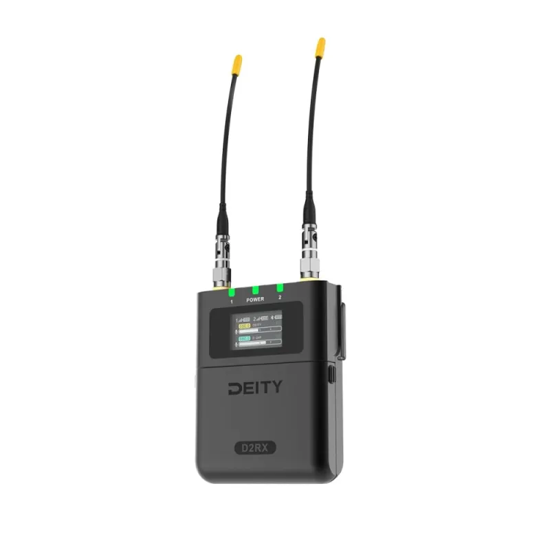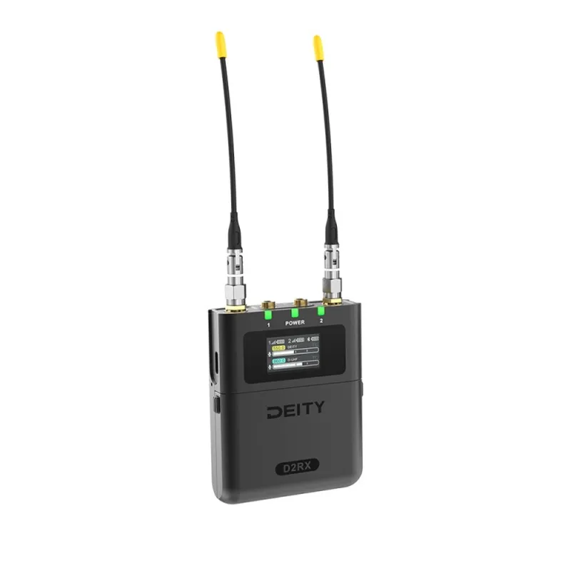 The Deity Theos D2RX Dual-Channel Wireless Receiver using a broad UHF spectrum instead of the congested 2.4 GHz band. This system’s frequencies range from 550-960 MHz. Using a wide band UHF spectrum is especially important for filmmakers working in various locations where multiple devices might compete for frequency space. In such situations, Deity Theos D2RX ensures that you always have a clear frequency to work with, thus lowering the risk of interference.