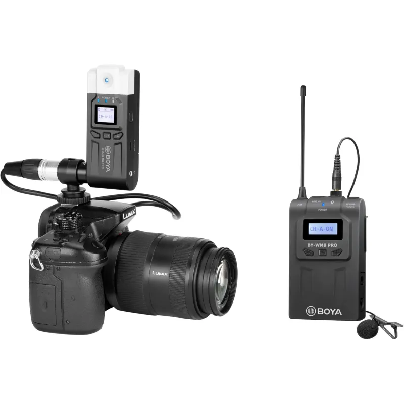 The Boya BY-WM8 Pro-K7 is an upgraded UHF Wireless Microphone System for capturing audio with dual subjects, features an easy-to-read LCD display, 48 UHF channels, automatic locked function, and selected mute function. Including a bodypack transmitter and a XLR plug-on receiver, the wireless microphone system is suitable for live vocals, presentations, interviews, ENG/EFP, film production, etc.