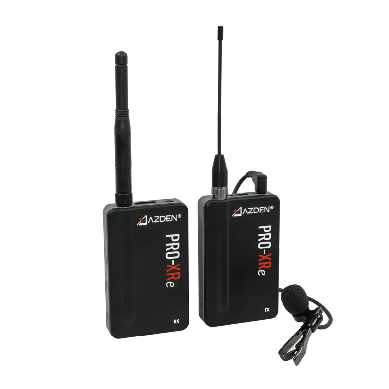 Azden PRO-XRe ir 2.4GHz digitālā bezvadu mikrofonu sistēma, kas piedāvā signāla redundances tehnoloģiju, optimālos apstākļos darbības attālumu līdz 350 pēdām un 20 stundu akumulatora darbības laiku. Komplektā ietilpst TRRS un 3.5mm uz Lightning kabeļi, telefona turētājs un divu mini-USB lādētājs.