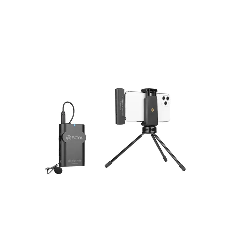 BOYA BY-WM4 PRO-K3 ir 2,4 GHz bezvadu mikrofonu sistēma, kas īpaši izstrādāta Lightning iOS ierīcēm. Tas ir aprīkots ar korpusa pakotnes raidītāju (TX4 Pro) un miniatūru uztvērēju ar Lightning savienotāju (BY-WM4 PRO RXD), vienu daudzvirzienu lavalier mikrofonu.