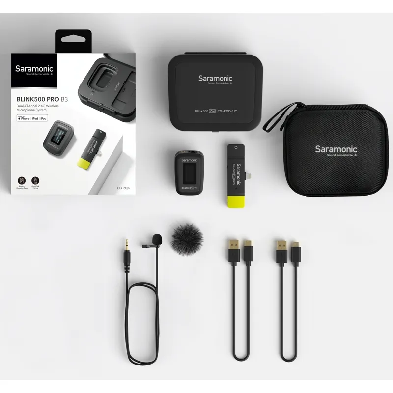 Blink 500 Pro B3 ir neticami kompakta, viegla un profesionālas skaņas bezvadu mikrofonu sistēma, kas tika izstrādāta Apple iPhone un iPad. Iekļautais raidītājs ir pietiekami mazs, lai to varētu piespraust tieši pie kreklu apkaklēm, un komplektācijā iekļautais RXDi MFi sertificētais apgaismojuma uztvērējs ir tik viegls un neuzkrītošs, ka to var viegli izmantot rokas kardāniem. Blink 500 B3 ļauj pēc iespējas vienkāršāk izmantot bezvadu mikrofonus ar Apple ierīcēm, un tas nodrošina apraides kvalitātes skaņu komplektā, kas ir pārsteidzoši kompakts un viegls.