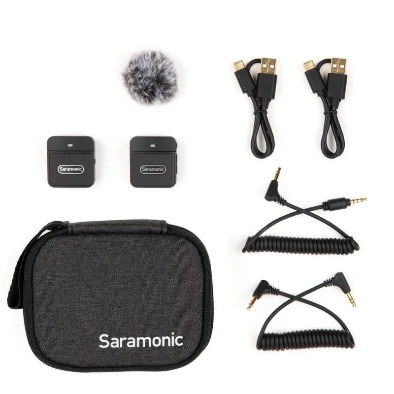 Ultrakompaktā 2,4 GHz divkanālu bezvadu mikrofona sistēmaSaramonicBlink100 bezvadu mikrofona sistēma ir ultrakompaktā un pārnēsājamā 2,4 GHz bezvadu mikrofona sistēma, kas ir saderīga ar viedtālruņiem, planšetdatoriem, DSLR kamerām, videokamerām utt. Blink100 sistēmai ir automātiska savienošana pārī un izvēles trokšņu slāpēšana, nodrošinot apraides kvalitātes skaņu, kas ir ideāli piemērota tiešraidei, vlogiem, mobilajai žurnālistikai un citiem mērķiem.
