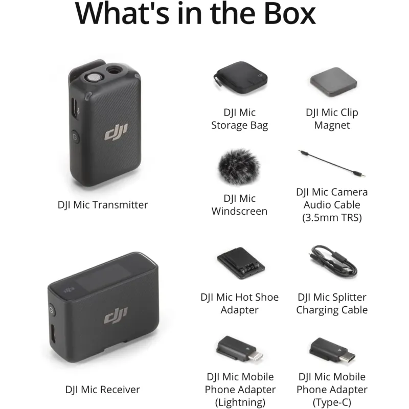 Visa līmeņa satura veidotāji var paaugstināt savu videoklipu, interviju un straumēšanas vērtību, izmantojot DJI Mic — vienkārši lietojamu, patiesi bezvadu digitālo mikrofonu/ierakstītāju sistēmu, kas piedāvā spilgtu audio kvalitāti, vienlaikus nodrošinot visu elementi, kas nepieciešami, lai vienlaikus uzņemtu divus objektus DSLR/bezspoguļa kamerās vai iOS/Android viedtālrunī. Sistēma ieraksta skaidru un uzticamu skaņu līdz pat 820 ', izmantojot divus miniatūrus piespraužamus daudzvirzienu mikrofonus/raidītājus, kas darbojas kā rezerves ierakstītāji bezrūpīgam bezvadu savienojumam. Nelielo uztvērēju var uzstādīt uz DSLR kameras vai DJI Action 2 kameras vai pievienot tieši viedtālruņa vai klēpjdatora Lightning/USB portam. Izmantojot ātro savienošanu pārī, raidītāji un uztvērējs automātiski uzlādējas un savieno pārī, tiklīdz ievietojat tos uzlādes futrālī. Vienkārši pabeidziet sākotnējo iestatīšanu, un dažu sekunžu laikā varēsiet ierakstīt kvalitatīvu audio.