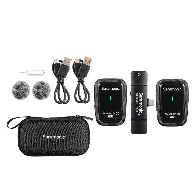 Saramonic Blink500 ProX Q6 Wireless Audio Transmission Kit (RXUC + TX + TX) The Saramonic Blink500 ProX Q6 (RXUC + TX + TX) is a versatile wireless audio transmission kit designed for vloggers, journalists, youtubers or tiktokers. In the set you get a receiver that plugs into a USB-C port (for example, on a smartphone, tablet or laptop), 2 transmitters with integrated microphones, and the necessary accessories. This is everything you need to achieve professional quality recordings. The set guarantees a transmission range of 100 meters and 6 hours of operation on a single charge. The microports feature low latency and a very good signal-to-noise ratio. The set also comes with a durable zippered case. Main Product Features wireless audio transmission kit with 1 receiver and 2 transmitters compatible with USB-C equipped devices ideal for working with smartphones and tablets perfect choice for youtubers, vloggers, tiktokers, web creators and journalists records clear and crisp audio with barely audible background noise excellent quality of recorded sound (signal-to-noise ratio - 84 dB, sampling - 48 kHz, frequency response - 20 Hz - 20 KHz) small and ultralight transmitters with built-in microphones and clips for attaching to clothing the transmitters can operate for 6 hours on a single charge Up to 100 meters range guarantees even more convenient operation receiver powered directly from the USB-C port the ability to connect headphones to the receiver and monitor audio in real time Possibility to power the transmitters via USB-C port (e.g. from a power bank) possibility to record audio in STEREO and MONO modes impressively low latency of 8 ms ideal adjustment to the needs of recording - 6 levels of signal gain (gain) included case, cable kit and deadcat cover Smartphones, tablets and computers with USB-C port The Saramonic Blink500 ProX Q6 (RXUC + TX + TX) wireless audio kit was created specifically for smartphone, tablet and computer users. Unlike the Q1, Q2, Q3 and Q4 variants (available as separate products), it relies here on the USB-C standard, which is gaining popularity every year. The connector used in the receiver will easily connect to the device of your choice, even if it is in an armored case! Universal and versatile Saramonic Blink500 ProX Q6 (RXUC + TX + TX) is a wireless audio transmission kit that includes: 1 USB-C receiver, 2 transmitters with built-in microphones, a zippered carrying case and the necessary cables. The lightweight microports are ideal for interviews, reports, vlogs, live broadcasts, webinars, remote lectures or filming wedding ceremonies. 100 meter range The Saramonic Blink500 ProX Q6 Wireless Audio Transmission Kit (RXUC + TX + TX) provides a signal range of up to 100 meters. This allows you to move freely with the transmitters over a wide area and simultaneously record high-quality audio without any interference. Transmitter with built-in microphone In the Blink500 ProX Q6 (RXUC + TX + TX) kit, youll find small and ultralight transmitters that feature integrated omnidirectional microphones. The signal-to-noise ratio values are 84 dB, the sampling frequency here is 48 KHz, and the frequency response is in the range of 20-20 KHz. Thanks to these parameters, it is possible to record clear and crisp sound, with minimal background noise. Always-on-your-place The lightweight and small size of the Blink500 ProX TXQ transmitters will make you forget they exist more than once. You can quickly attach the microport to your shirt, blouse or jacket using a special clip. This solution ensures that the transmitter will always stay where you need it. Low latency The Saramonic Blink500 ProX Q6 wireless audio transmission kit (RXUC + TX + TX) is distinguished by its extremely low latency level. It amounts to just 8 ms. This is great news for those who wish to use microports during online transmission. The set will ensure the absence of any audio latency during recordings! Real-time monitoring The Blink500 ProX RXUC receiver is equipped with a 3.5mm mini jack socket, allowing easy connection of headphones. By monitoring recorded conversations, interviews or speeches, you will effectively detect crackles, noises or other unwanted noises. Its also an excellent way to detect and eliminate errors or slips of the tongue. Specification model: Saramonic Blink500 ProX Q6 (RXUC + TX + TX) the Blink500 ProX TXQ transmitter digital transmission: 2.4 GHz directional characteristic: omnidirectional antenna: built-in range: up to 100 m transmitter output power: interference: 0.1% bandwidth: 20 Hz - 20 KHz reference audio input level: - 20 ~ -42 dBu (MIC input, 0 dB gain) signal-to-noise ratio: > 84 dB Power supply: built Li-ion rechargeable battery (3.7 V / 150 mAh) charging / power supply: USB-C DC 5 V port operating time on a single charge: about 6 h dimensions: 44.5 x 30.5 x 12 mm weight: 16.5 Blink500 ProX RXUC receiver digital transmission: 2.4 GHz range: up to 100 m audio output: USB-C power supply: from connected device antenna: built-in dimensions: 82 x 22 x 12 mm weight: 15.5 g Kit contents 2 x Blink500 ProX TXQ transmitter 1 x Blink500 ProX RXUC receiver 2 x deadcat wind shield (for the microphone built into the transmitter) 1 x needle to help push the pairing button 2 x USB-A / USB-C cable 1 x carrying case