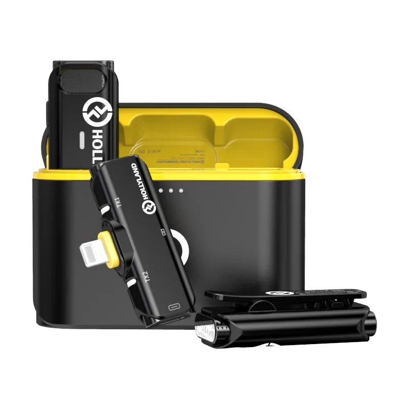 Ierakstiet līdz diviem cilvēkiem savā iOS ierīcē, kas aprīkots ar Lightning, lai veiktu mobilo žurnālistiku vai saturu, izmantojot melno LARK C1 DUO bezvadu mikrofonu sistēmu no Holilendas. Sistēma ietver divus raidītājus ar iebūvētiem daudzvirzienu mikrofoniem un vienu divkanālu uztvērēju — visiem ir kompakts formas koeficients.