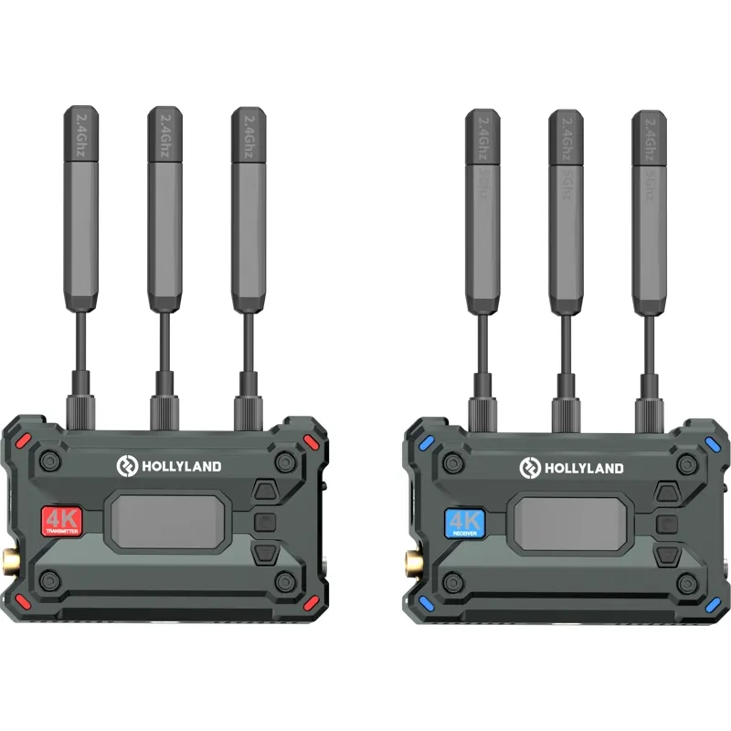 Papildiniet savu produkciju ar 4K30 bezvadu video pārraidi, izmantojot universālo Pyro S 4K HDMI/SDI bezvadu video pārraides sistēmu no Hollyland. Sistēmā ietilpst bezvadu raidītājs, bezvadu uztvērējs, septiņas antenas, USB-C adapteris, līdzstrāvas adapteris un regulējams kurpes adaptera stiprinājums. Raidītājam ir HDMI un SDI ieejas, un tam ir īpaši zema 50 ms latence, kas ļauj veikt pārraidi no attāluma līdz 1300' līdz komplektā iekļautajam uztvērējam. Izmantojot apraides režīmu, izmantojot līdz četriem uztvērējiem un divām mobilajām ierīcēm, sistēma nodrošina pārraidi līdz 650' attālumā. Uztvērēja izejas ir HDMI un SDI.