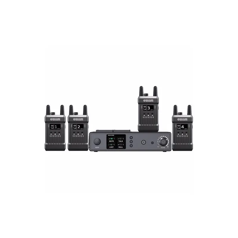 1000ft Full-duplex Wireless Intercom System with 1 Portable Base Station and 4 Beltpacks. Provides wireless transmission within 1000ft range and Digital Duplex Bidirectional Communication.