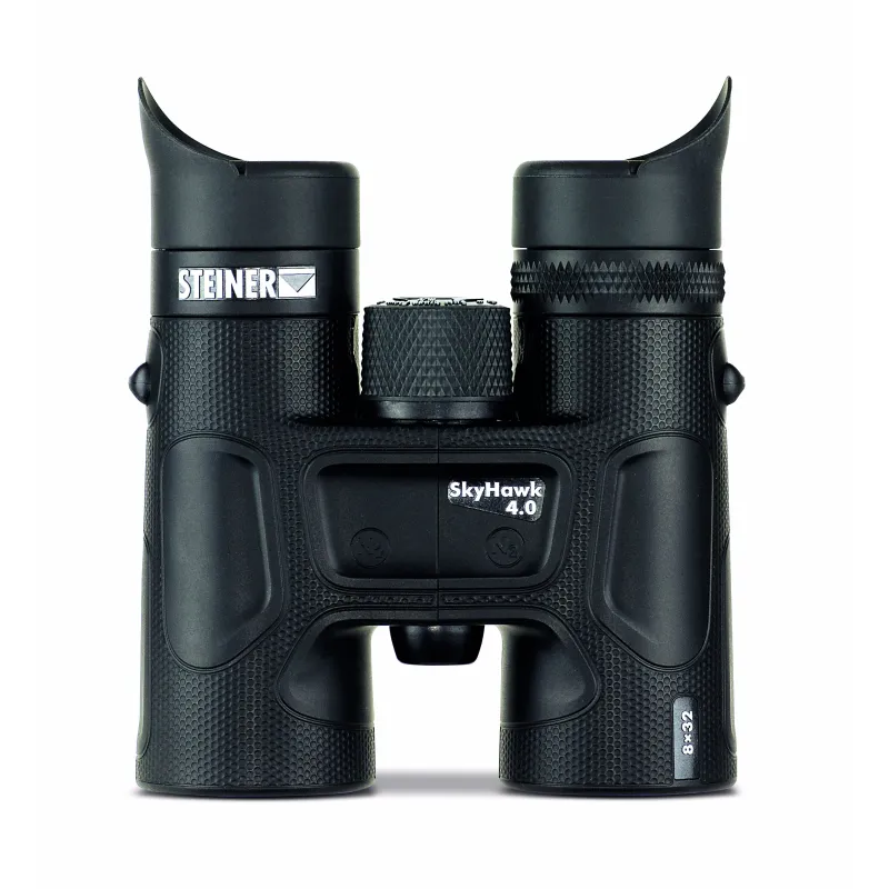 Tough, comfortable and lightweight The outstanding ergonomics of the Steiner SkyHawk 4.0 is a result of the heavy duty non-slip rubber coating and well-made finger depressions that always provide an excellent grip, no matter what weather conditions you meet. The eyecups are made from soft skin-friendly silicone and designed to prevent light entering from the sides so that you will always have a crystal clear view through the binoculars. They can also be folded down for use with eye glasses.