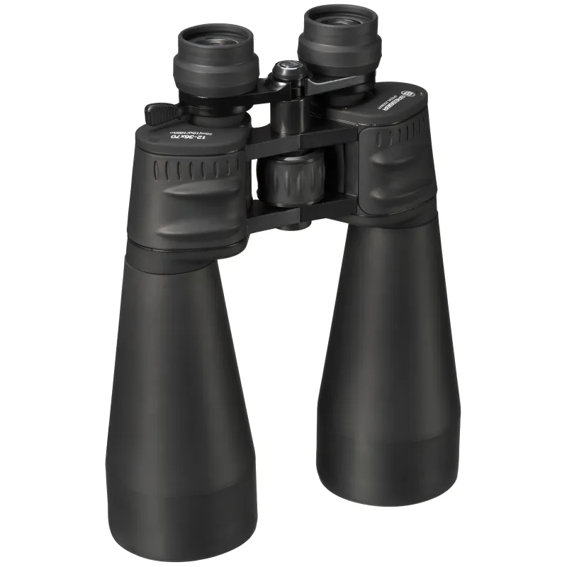 BRESSER Special-Zoomar 12-36x70 binoklis piedāvā aizraujoši asus attēlus. Atsevišķi okulāri ir rūpīgi saskaņoti viens ar otru, padarot palielinājumu nepārtraukti regulējamu ar tālummaiņas sviras palīdzību. Pateicoties ar FMC pārklātajam BaK-4 stikla materiālam, objektus lielā attālumā joprojām var redzēt kā skaidrus attēlus. Ērts un ergonomisks gumijas aizsargapvalks nodrošina stabilu satvērienu. Standarta statīva vītne un statīva adapteris ļauj vienkārši piestiprināt šo binokli pie jebkura fotostatīva.