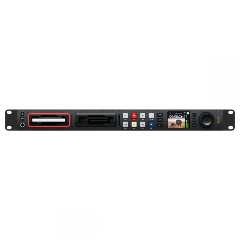 When customers need a portable broadcast solution, the HyperDeck Studio HD Mini model includes most features miniaturized into an elegant 5 inch wide compact design that's only one third of a rack unit wide. That means customers can fit 3 recorders in a single rack unit. Just use the optional Teranex Mini Rack Shelf and customers can mount the 3 units side by side, then bolt it into a standard equipment rack. Or customers can combine HyperDeck Studio Mini with other modules, such as a Teranex Mini Analog to SDI 12G to convert the input from analog to SDI, all in the same rack which is perfect for archive work. HyperDeck Studio HD Mini looks great when it’s not rack mounted and simply used by itself on a desktop.