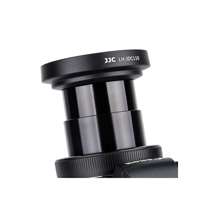The JJC LH-JDC110 consists of a lens hood and lens cap. The sun canopy is suitable for the Canon Powershot G1 x Mark III Compact Camera and shields the lens from unwanted incident light and limited negative effects such as color and lensflare. The sun hood also offers extra protection on the lens of the camera.