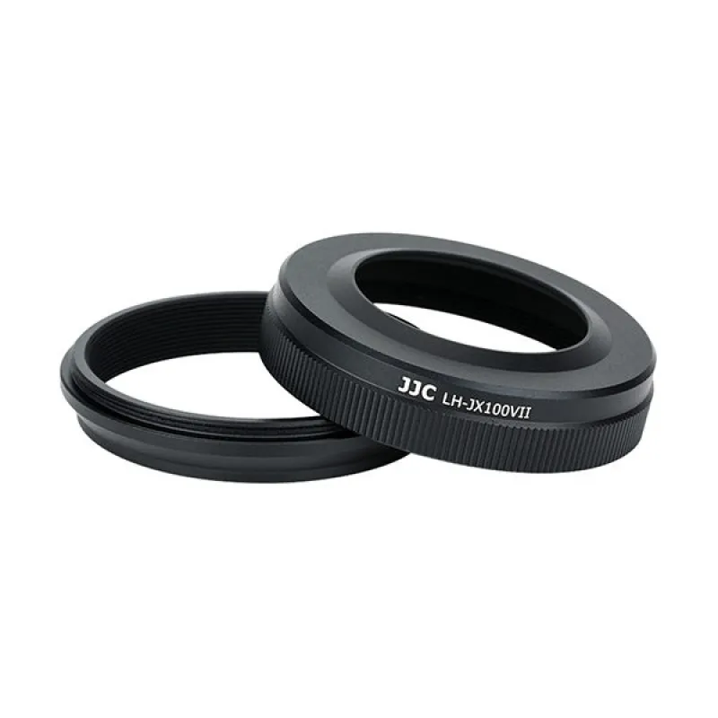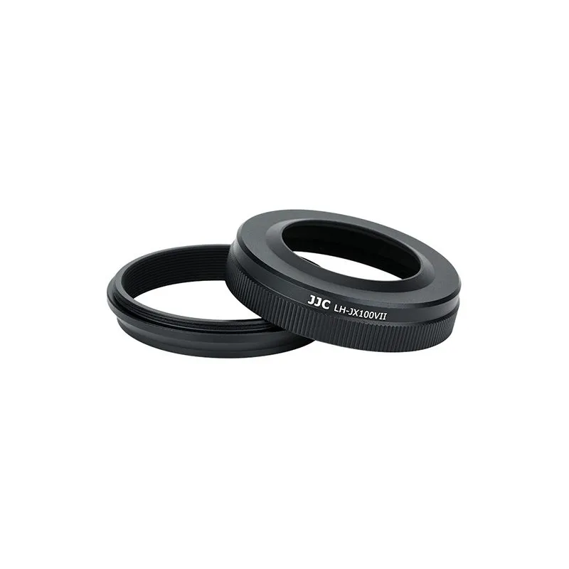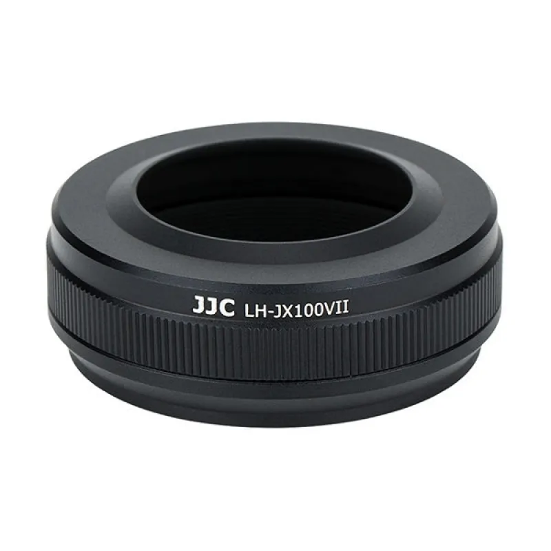 The JJC LH-JX100VII Sun hood with adapterring is suitable for the Fujifilm X100V, X100T, X100T, X100T, X100T, X100T, X100T, X100T, X100T, X100T and X100S Compact Camera. The lens hood shields the lens from unwanted incident light and limited effects such as color and lens flares. Moreover, the sun hood protects the lens against bumps and scratches. The sun canopy is made of rust -resistant aluminum with a matte finish on the inside.