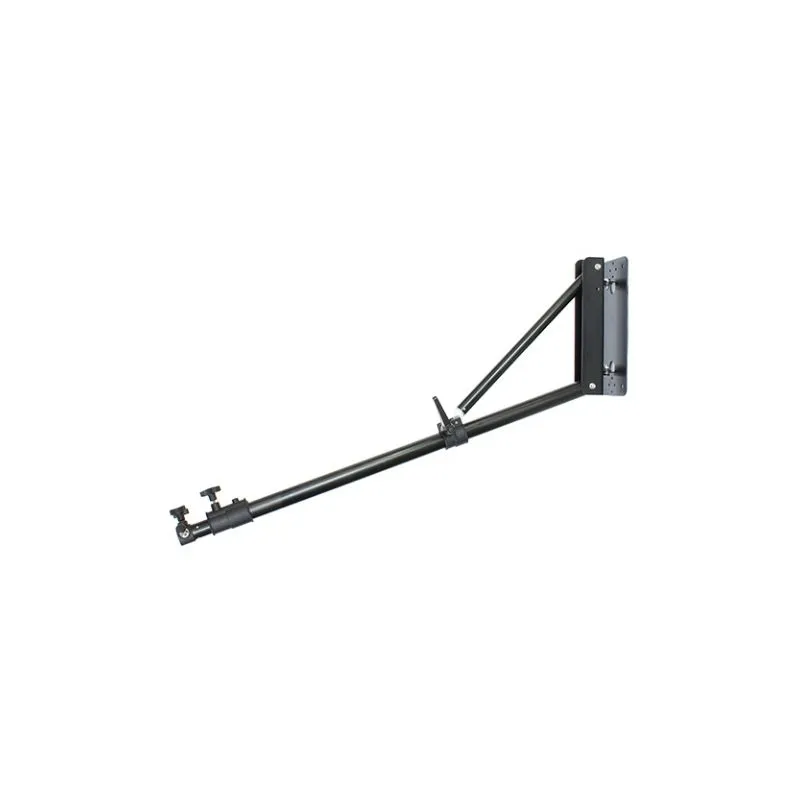 The Falcon Eyes WB-1690 Wall Boom can easily be mounted onto a wall or ceiling (mounting screws not included). The WB-1690 can be moved from left to right and can be adjusted in height (80 degrees upwards and 80 degrees downwards) and length due to its telescopic arm. The end of the WB-1690 is equipped with a universal and interchangeable ¼” and 3/8” spigot adapter, making it compatible with almost every studio flash unit. LED lamps, cameras etc. Further, the spigot can be positioned either horizontally or vertically. Dimensions wall plate 30 x 14 cm.