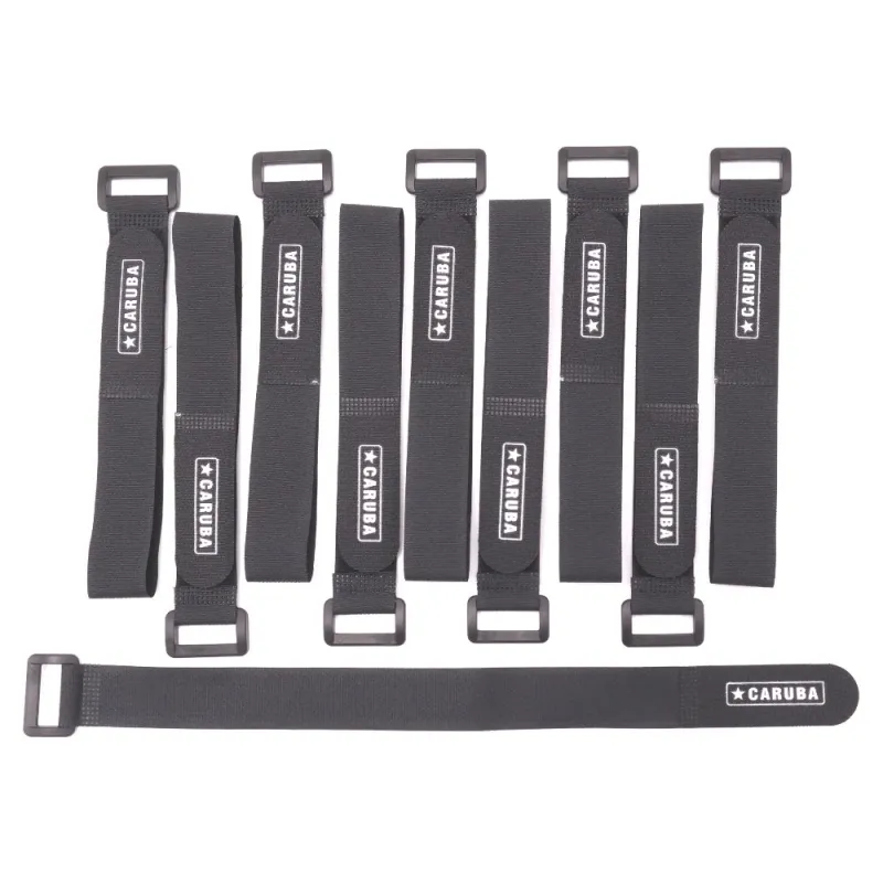 Caruba Fast Fixer Pro 1 ir parocīgs stiprinājums, ar kura palīdzību jūs varat noturēt statīva kājas stingri kopā, piemēram, transport, Fast Fixer Pro 1 ir 34 cm garš un 2,5 cm plats, un to var nostiprināt, izmantojot Velcro. Šos stiprinājumus var izmantot arī, lai glīti sasiet kopā kabeļus, piemēram, lai uzturētu kārtībā savu darba vietu vai kameras somu. Šajā komplektā kopā ir desmit saiņotāji.